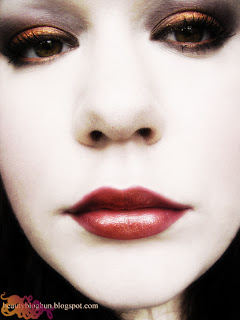 A bézs egy meglepő szín számomra. Sokkal csillámlóbbnak, pontosabban olyan csillámosnak képzeltem, mint a fekete. De nem, inkább finoman csillog, egyáltalán nem zavaróan. Kicsit rózsaszínes--barackos-réz szín, nincs is hasonlóm. Igazán szép meleg szín, az egész paletta hideg és szigorú lenne nélküle. *_*