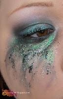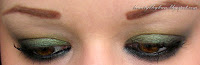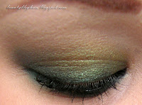A fekete egy nagyon szép sötét fekete, tele csillámokkal. Szerintem a csillámok elég jól látszanak, és bírják a kiképzést is - magyarul nem hullanak le nagyon -, de azért a túl erős satírozást tanácsos kerülni. [Nem tudom kihagyni a hasonlítgatást, de a MAC #Black Tiedra emlékeztet, de szerintem sokkal szebb.]
