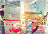 Az egészet pedig beraktam egy helyes kis átlátszó Essence-es táskába, így néz ki: