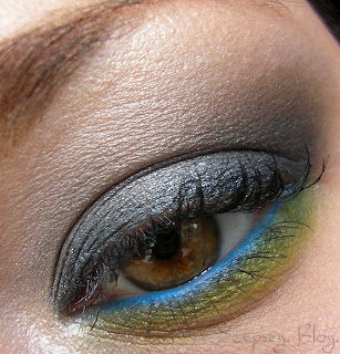 A mai sminkem Killer Colours Viola egyik sminkje inspirálta. Az övé ezerszer jobb, sötétebb, füstösebb. A szemhéjam közepére tettem egy kis zöldet, de aztán elsatíroztam és a képeken nem látszik. A vízvonalamat pedig azért is nagyon kékkel húztam ki, mert miért ne.